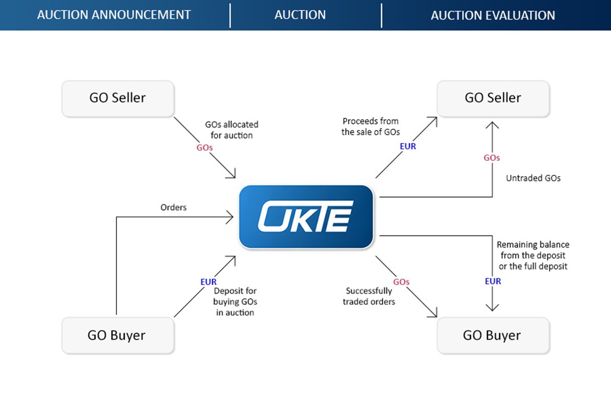 OKTE, a.s., as the organizer of the short-term electricity market, organises auctions of guarantees of origin of electricity from renewable energy sources and guarantees of origin of electricity produced by highly efficient combined heat and power generation. These guarantees of origin are issued pursuant to Act No. 309/2009 Coll. for production devices supported by investment aid and production devices receiving operational support in the form of a Feed-in Tariff or Feed-In Premium.